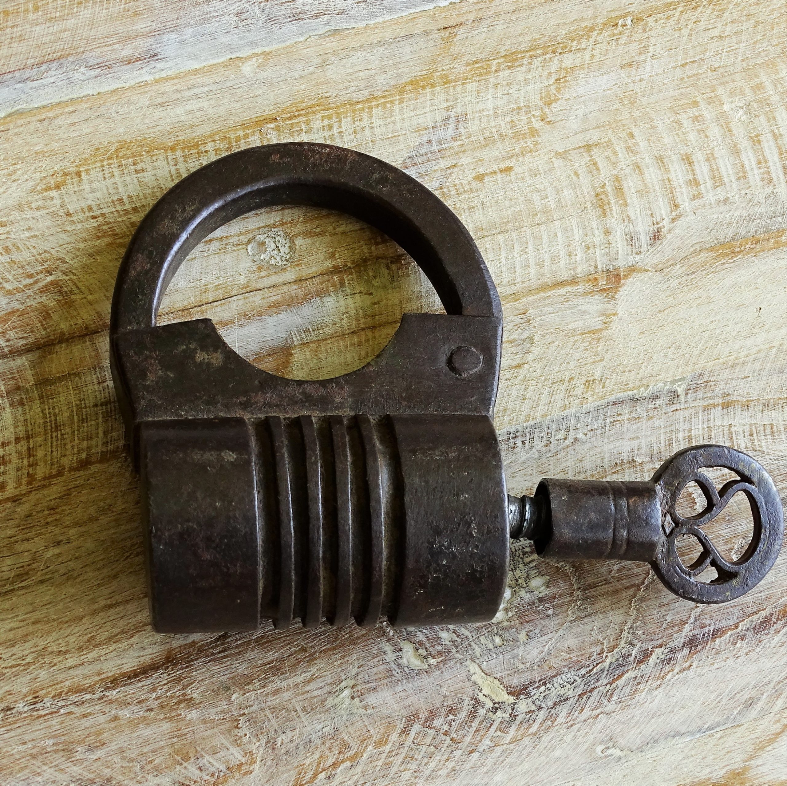 Solid iron antique lock from India, with key.