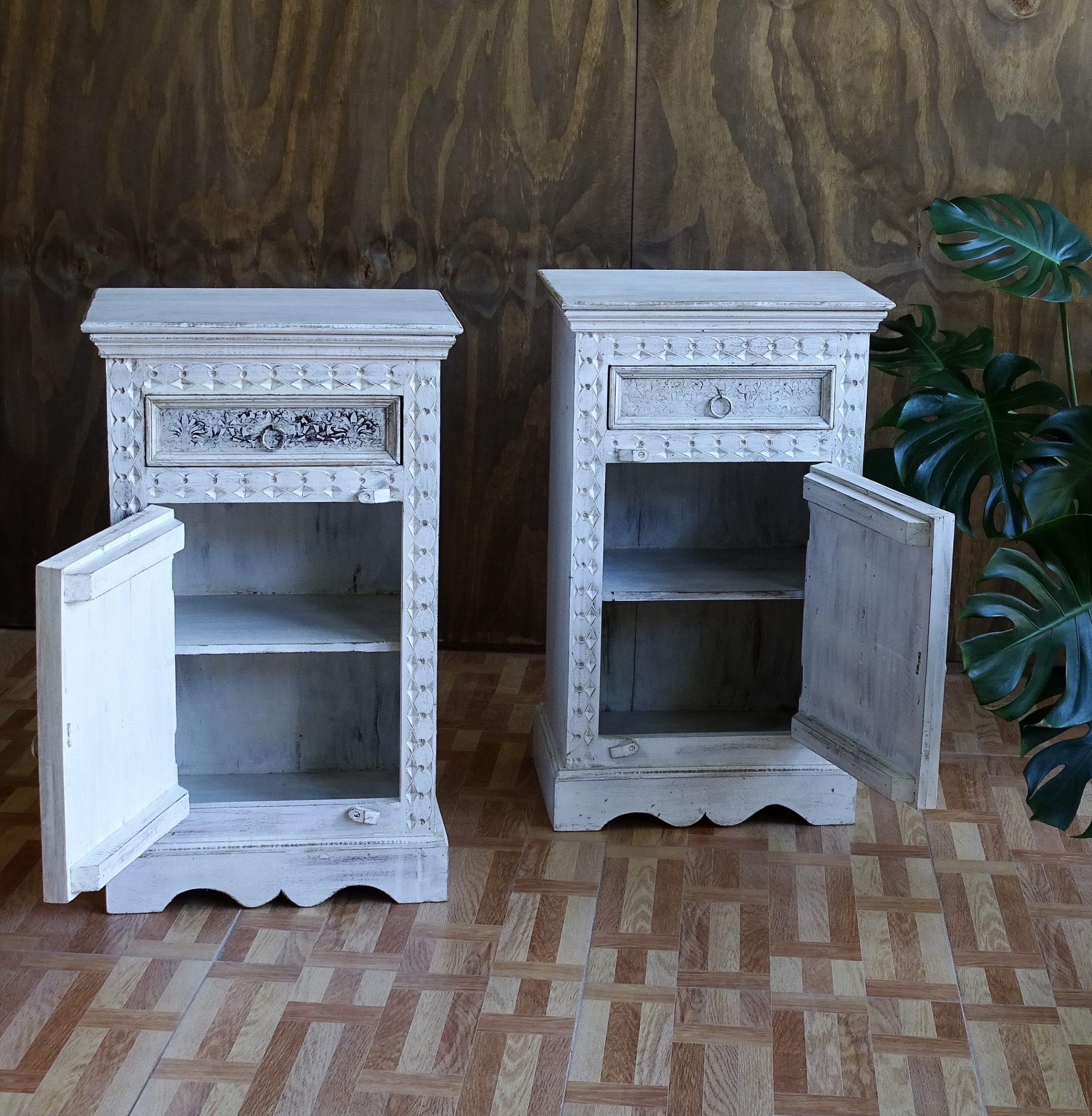 Bedside with brass ornaments