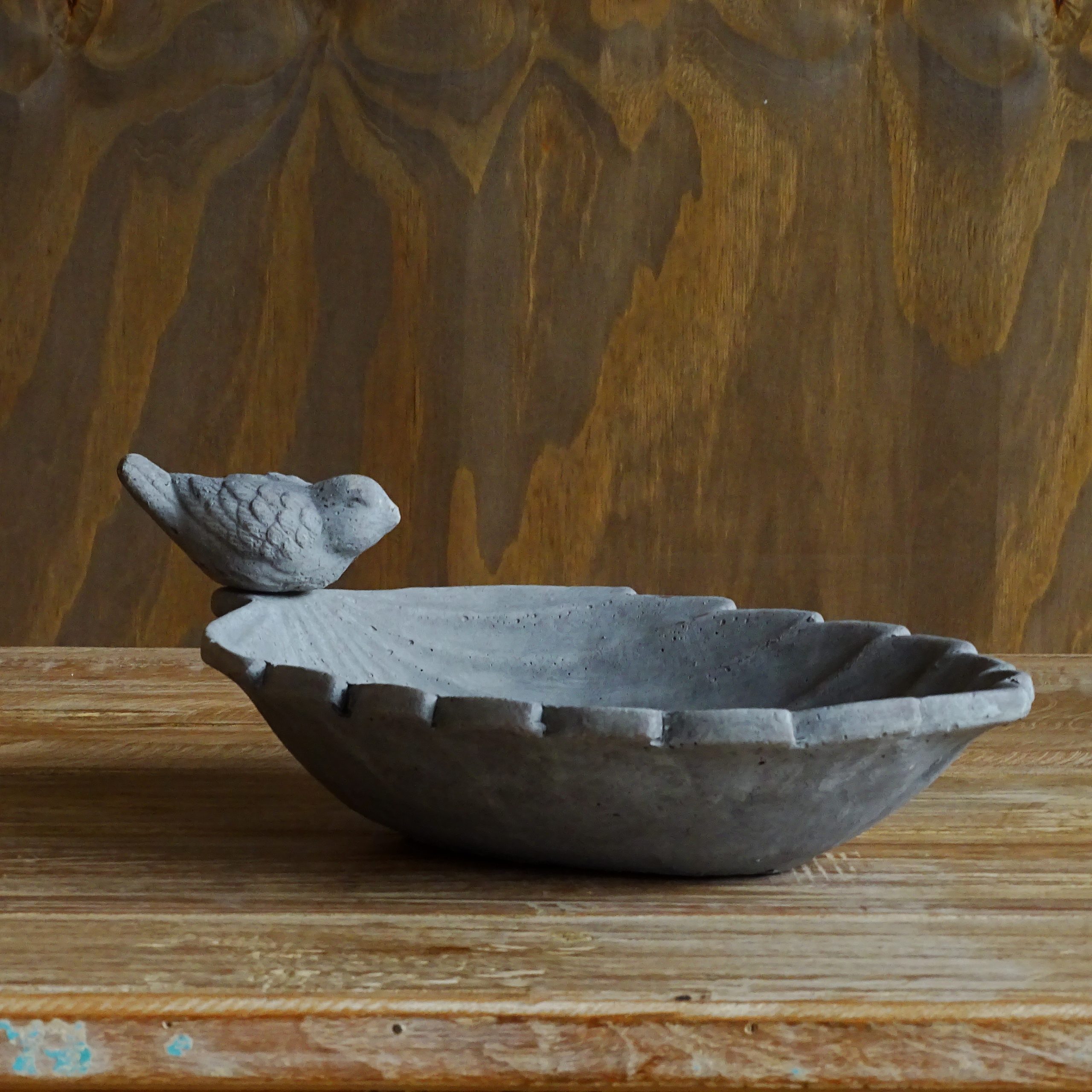 Clay bird bath.