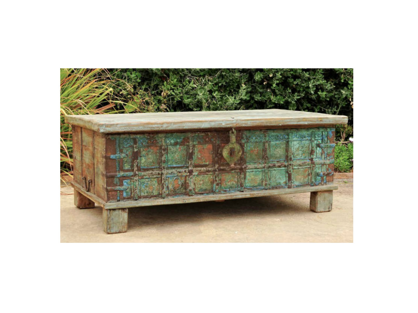 Storage trunk / blanket box with an old iron panel front. 118x65x48 cm