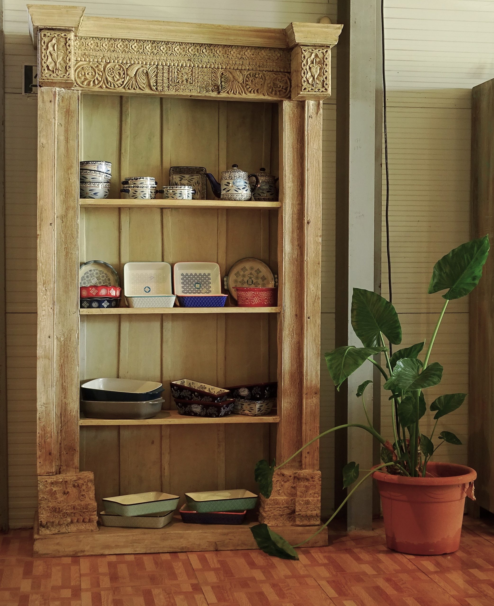 Carved Wooden Bookcase 126 × 48 × 226 cm