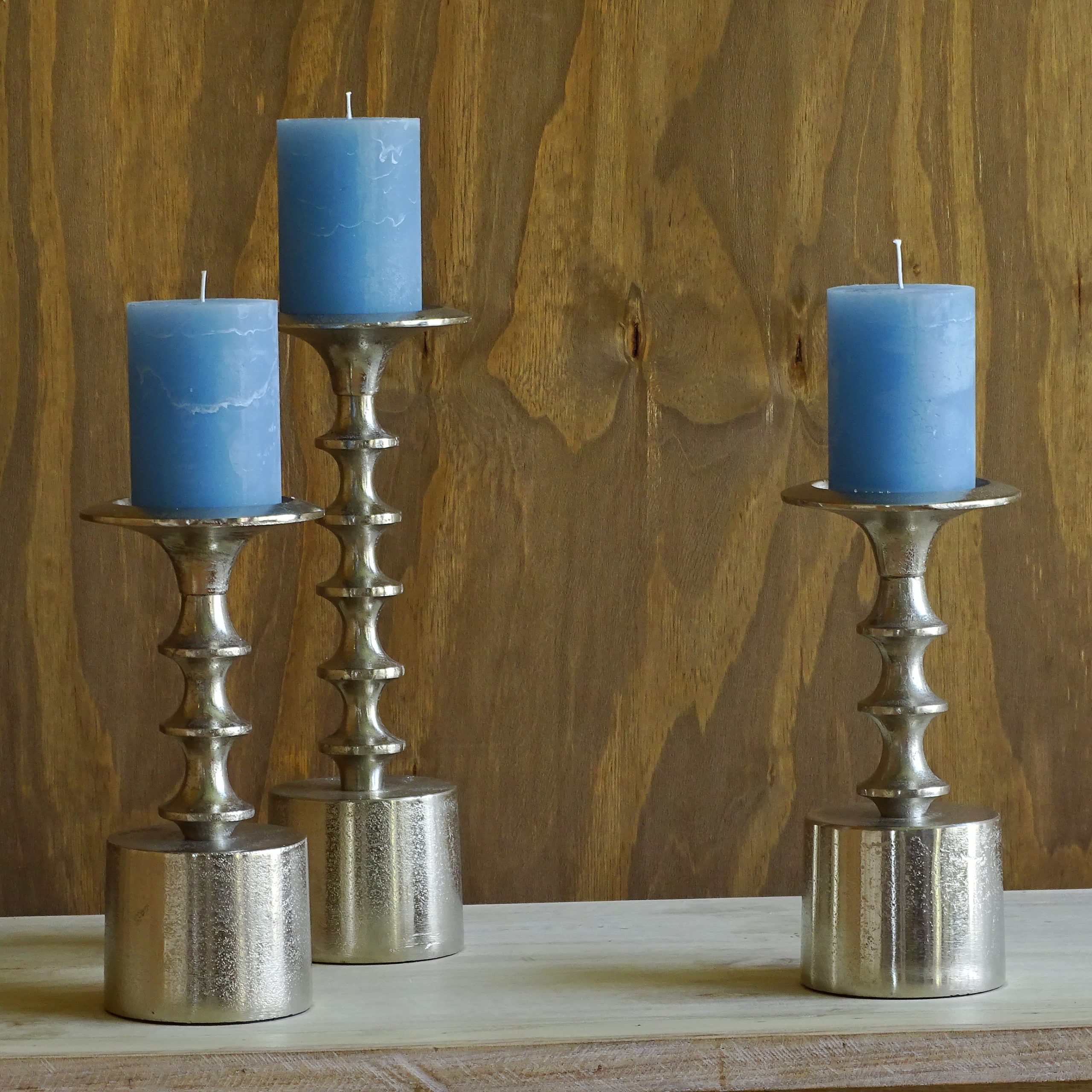 Nickel candle holder in two sizes : Small (HT15054) 12x24cm. €64,50   –  Medium (HT15053) 12x31cm.€79,50