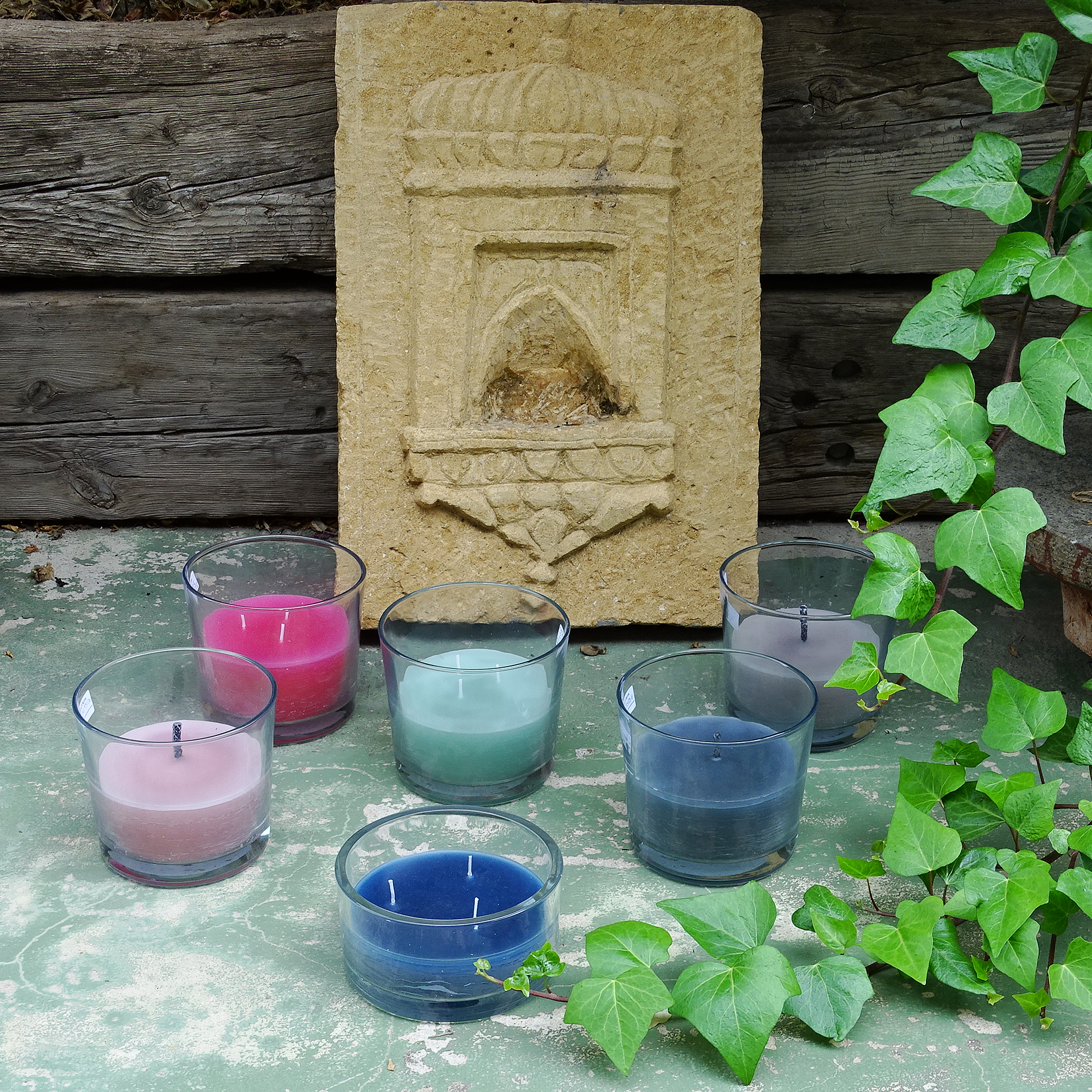 Candle in pot for outdoor, different colors