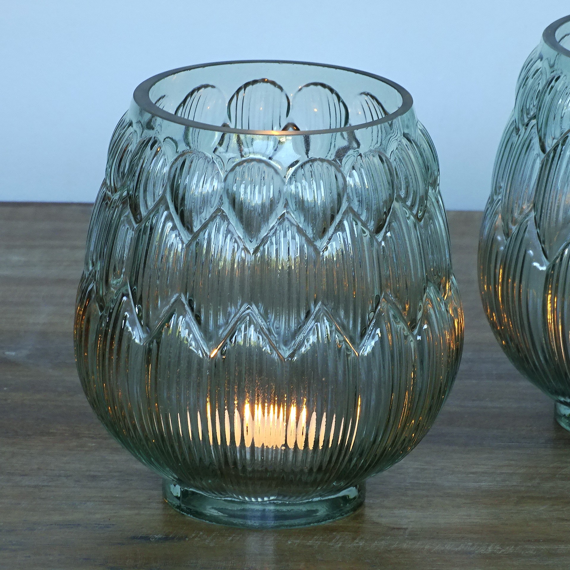 Glass candleholder. 12,5 X 16 cm. Price by unit.