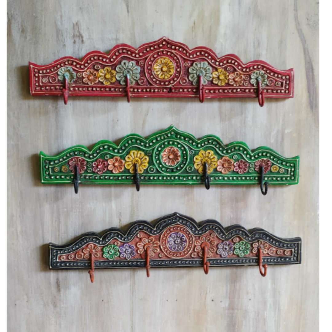 Decorative wooden coat rack 4 hooks. Different colours 50 × 6 × 11 cm