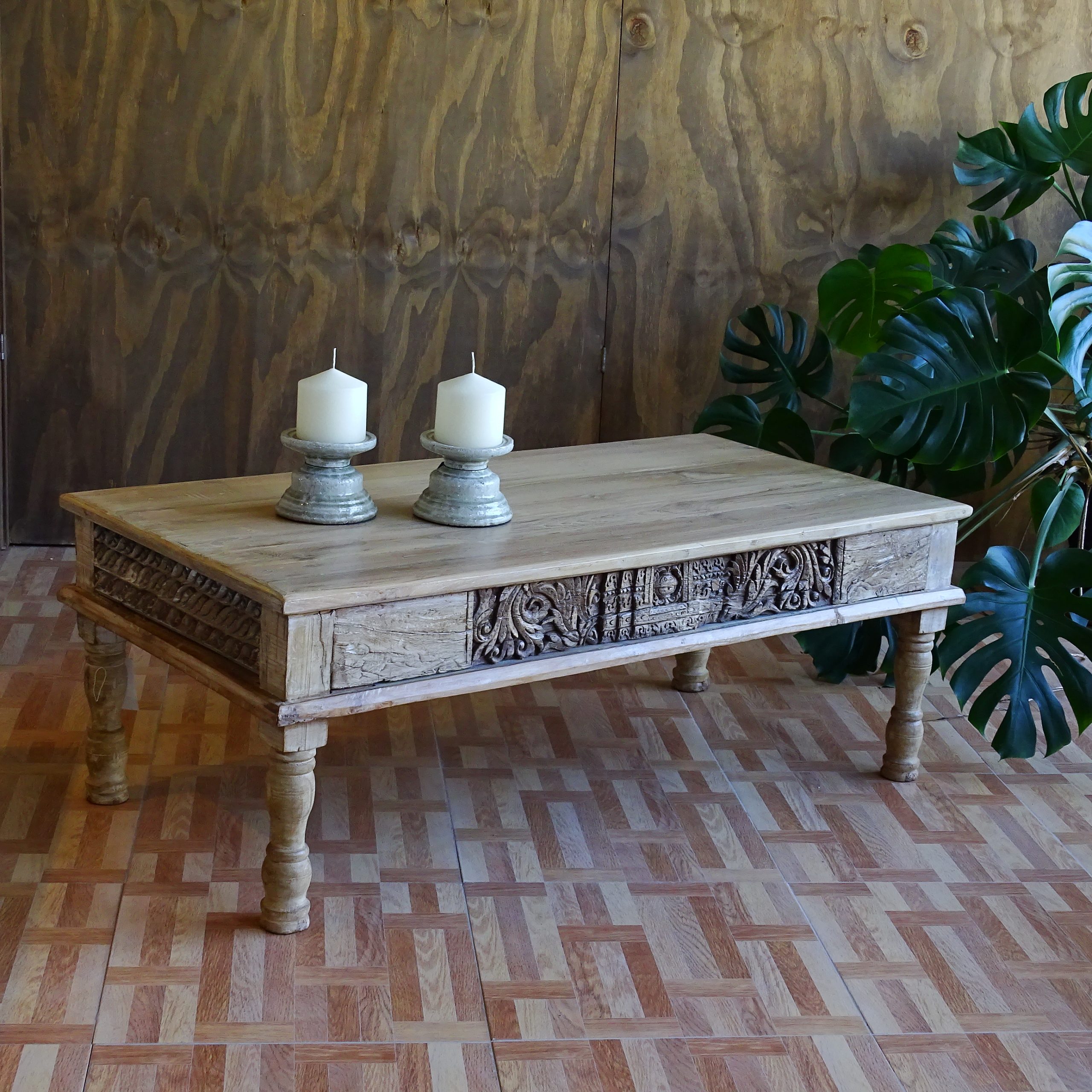 This living room table, crafted from recycled teak wood, is an authentic and unique piece that adds warmth and character to any space.