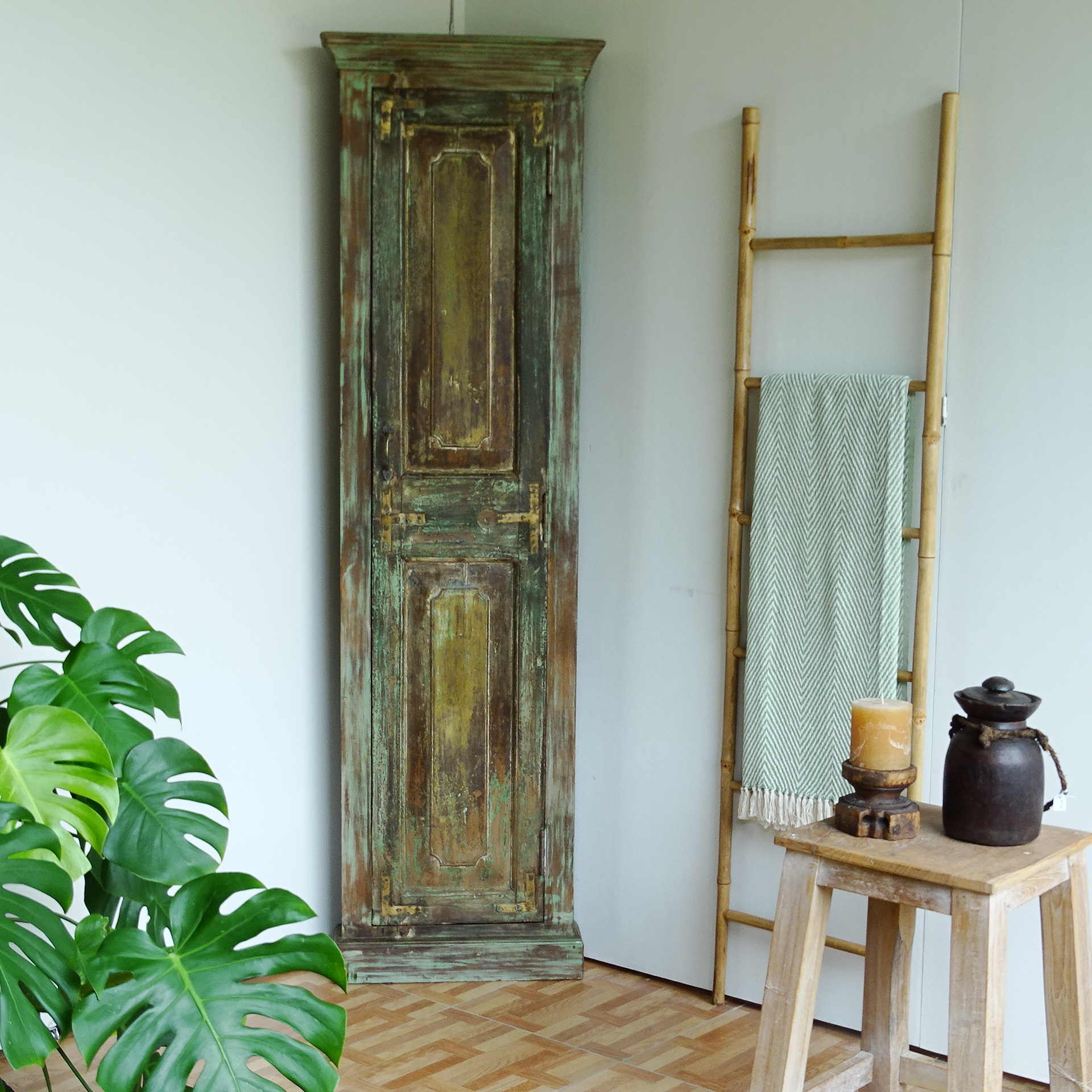 Maximize your space with our corner cupboard, handcrafted in 🇮🇳 India from reclaimed wood ♻️ — each piece tells its own story.
