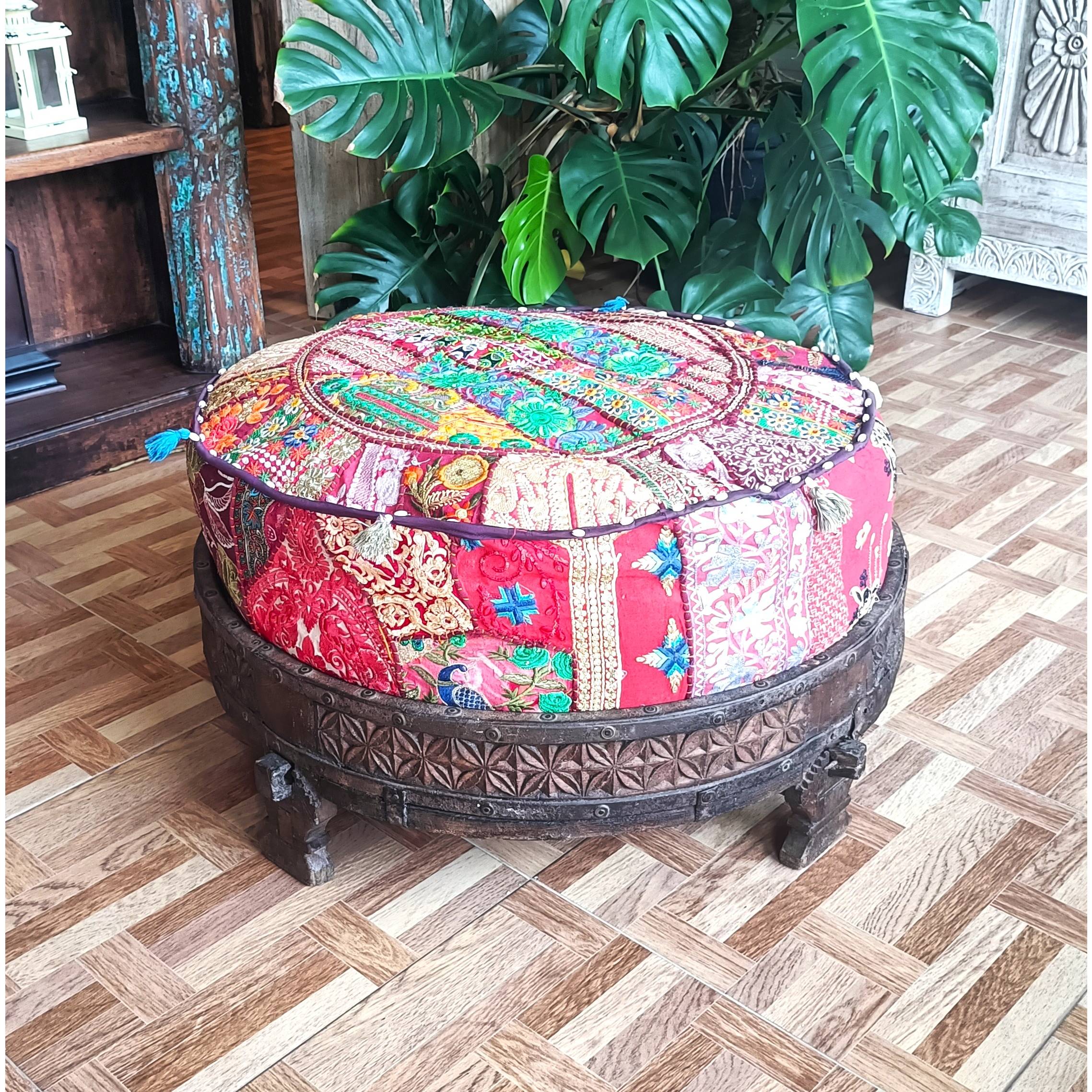 Grinder  with embroiderd cushion . 73 x 73 x 45 cm.