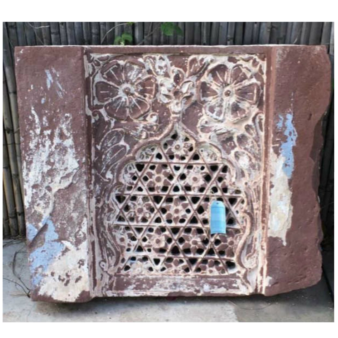 Old Indian stone handmade out of sandstone, used in a building. Beautiful as decoration in gardens or patios.