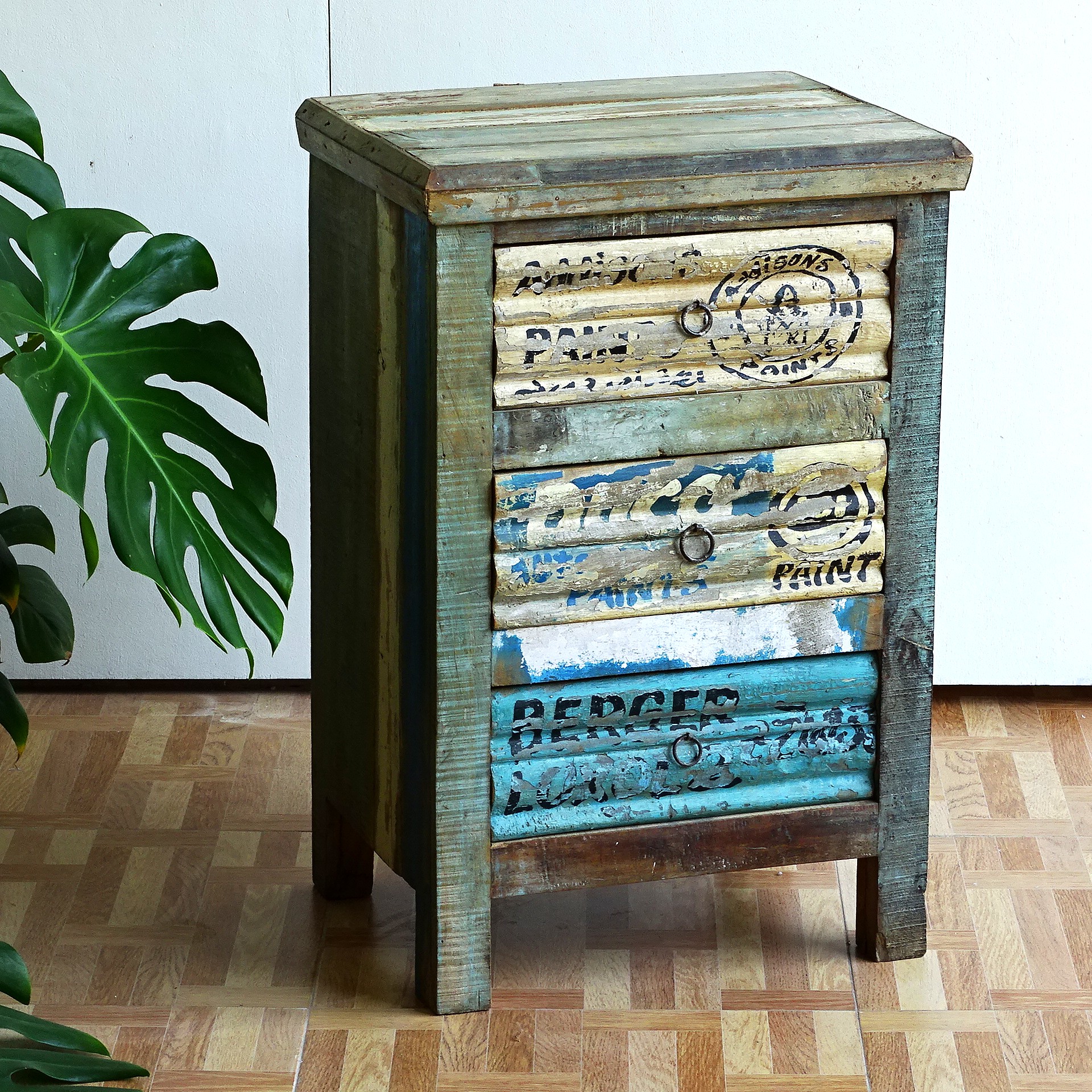 Wooden drawer bedside table. 46,5 x 36,5 x 70 cm.