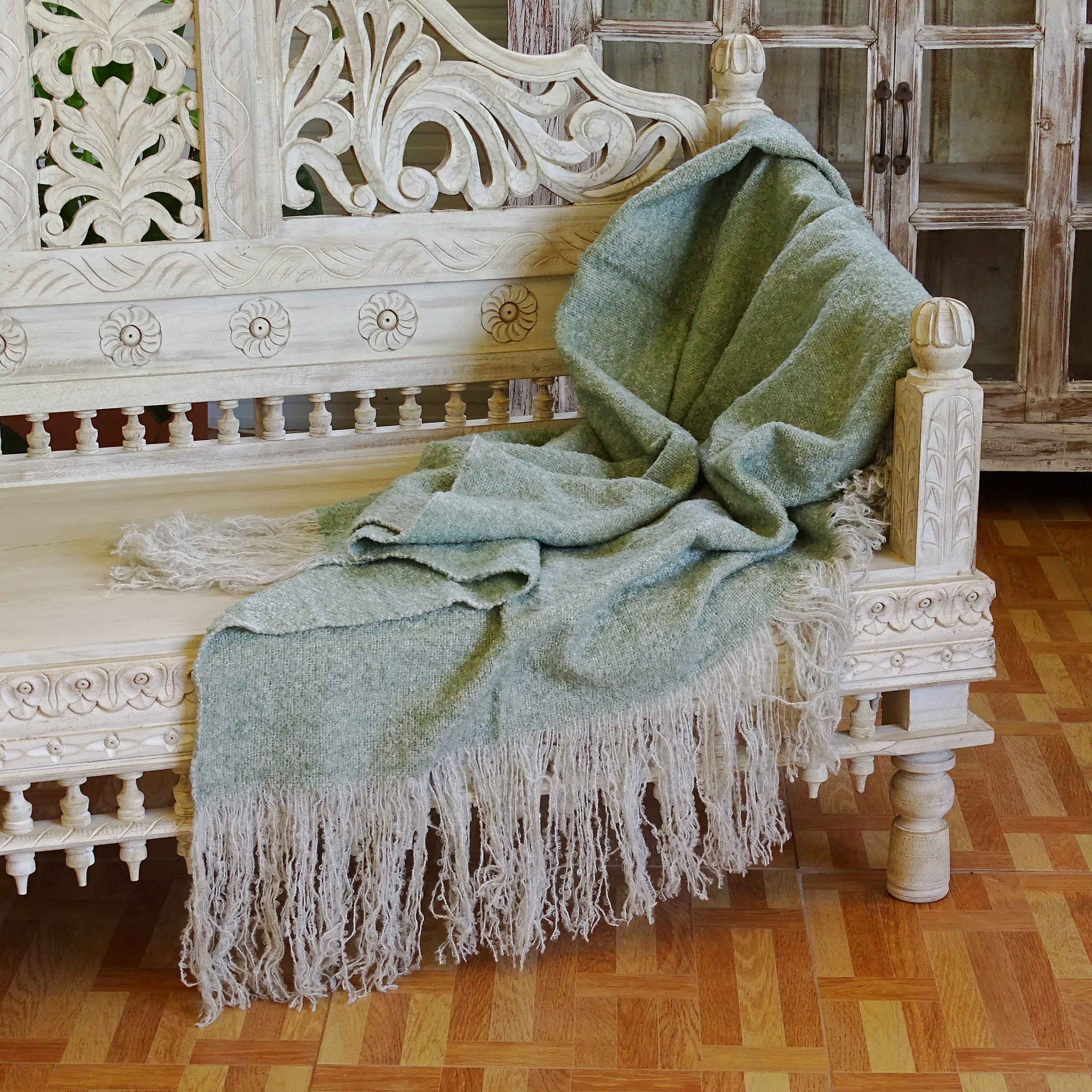 100% wool sofa blanquet, sage color, 130×170