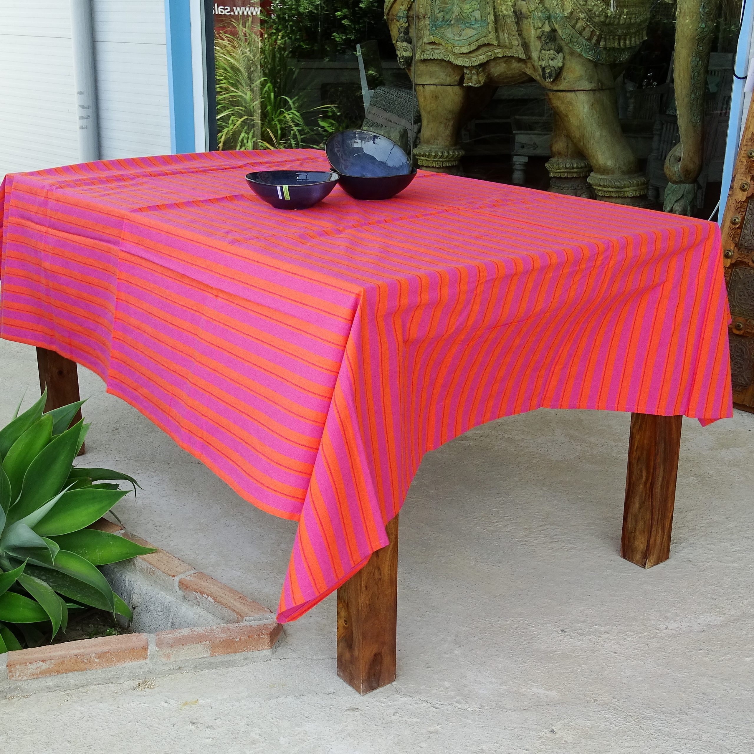 100% high quality cotton tablecloth with fuchsia stripes. Different sizes: